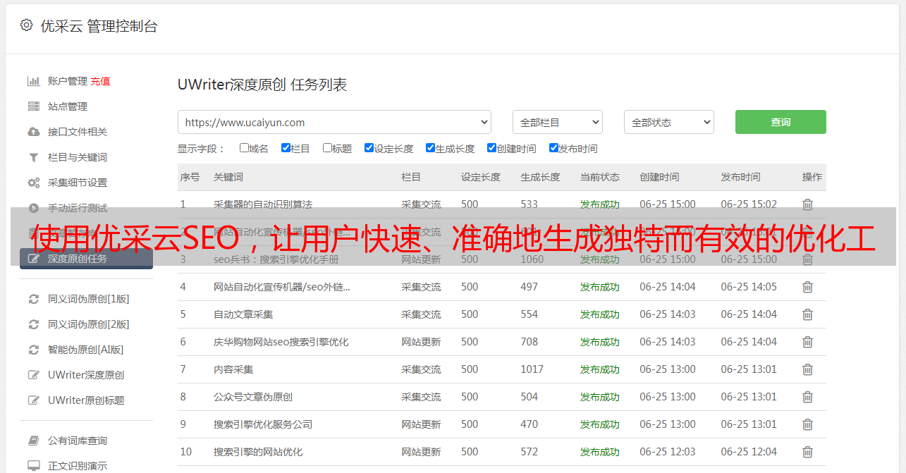 使用优采云SEO,让用户快速、准确地生成独特而有效的优化工具!