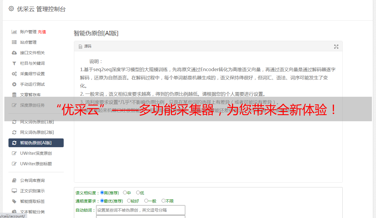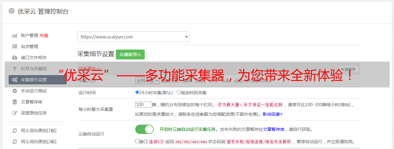 “优采云”——*敏*感*词*采集器,为您带来全新体验!