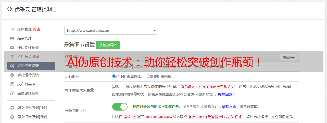 总之, AI 伪原创相似度是一项非常重要且引人注意的人工智能技术,它不仅能帮助我们识别和控制文章中出现的重复内容,还能帮助SEO 优化,这样就可以避免因为采用抄袭方式而影响网站在搜索引擎中的排名。此外,我们还可以使用“优采云”这样特定软件来实现 AI 伪原创相似度功能,这对我们来说既有效、又节省时间、省力。