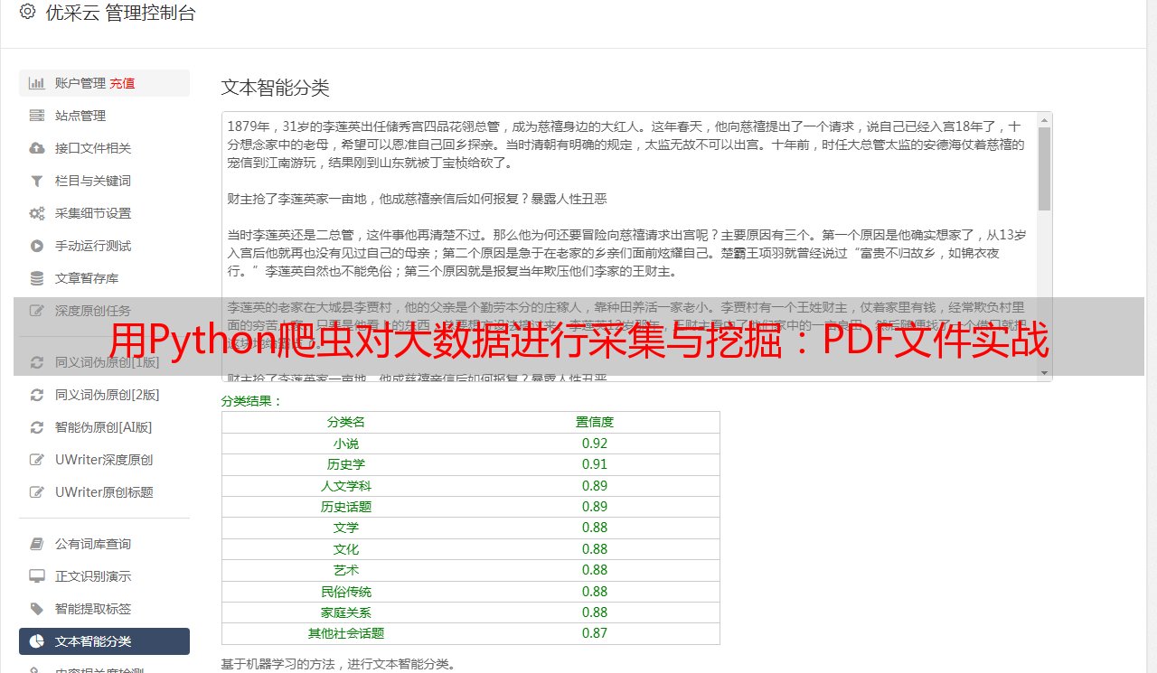 优采云 发布时间: 2023-02-20 00:23近年来,大数据技术及其应用正在得到越来越多的关注和应用,大数据采集与挖掘PDF也随之而来。Python爬虫是一种高效的大数据采集与挖掘PDF工具,可以帮助企业快速地从网络上采集和解读PDF文件。