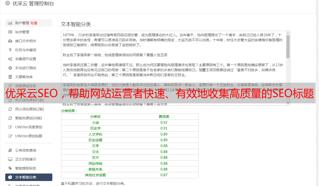 优采云SEO,帮助网站运营者快速、有效地收集高质量的SEO标题