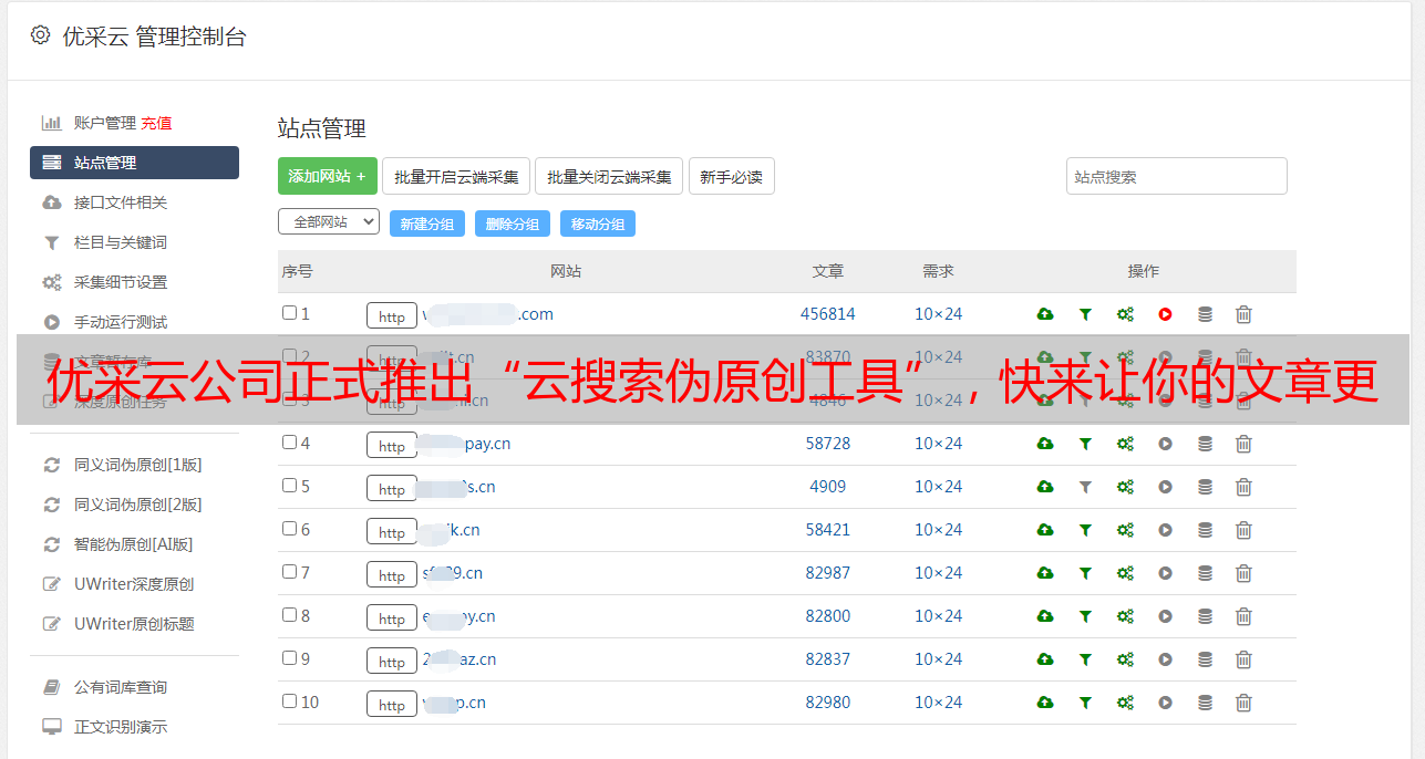 优采云公司正式推出“云搜索伪原创工具”,快来让你的文章更精彩!