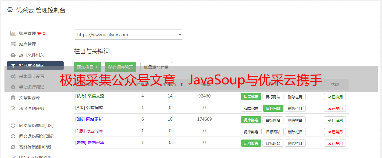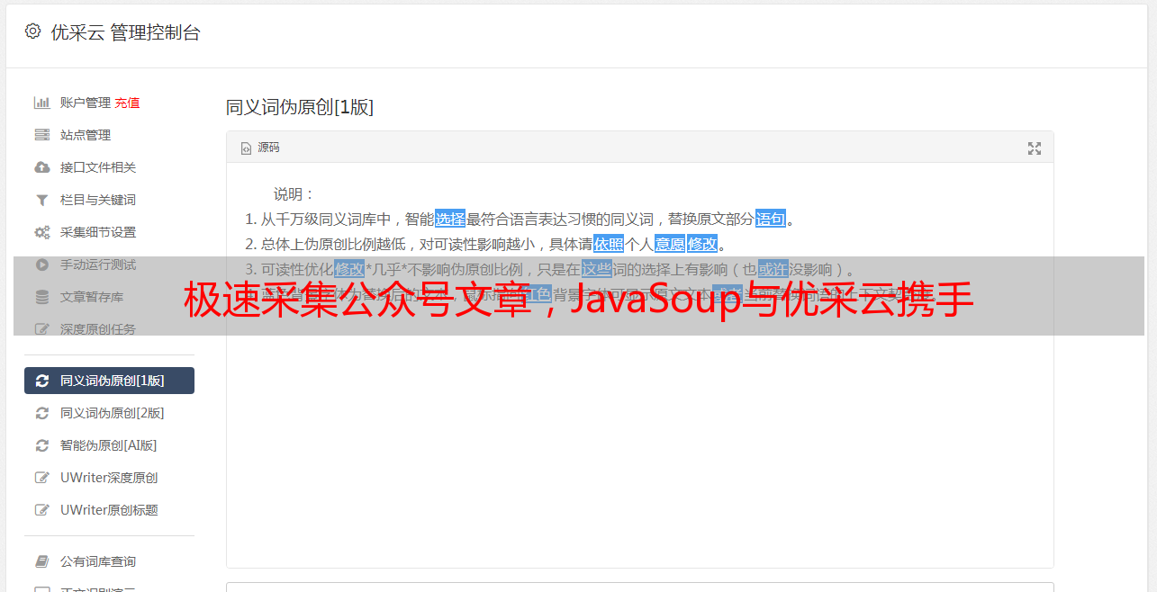 为了帮助用户快速采集公众号文章,优采云(www.ucaiyun.com)公司开发了一款SEO优化工具——优采云。优采云是一款专业的SEO工具,它能够帮助用户快速准确地采集公众号文章内容、图片和相关信息。使用优采云工具后,用户不用再使用java jsoup 来手动采集文章内容了,而是直接使用工具就能轻松地获得所需要的内容。