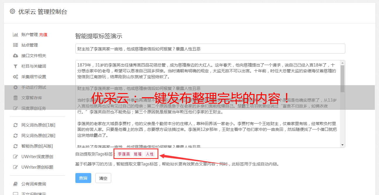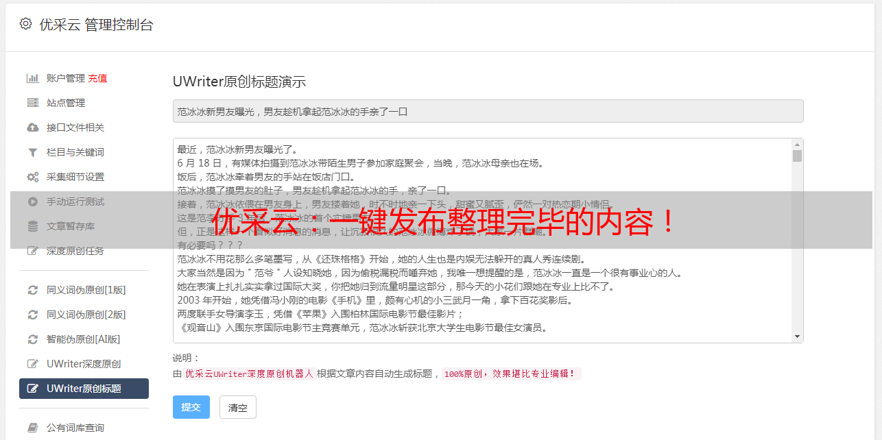 优采云:一键发布整理完毕的内容!