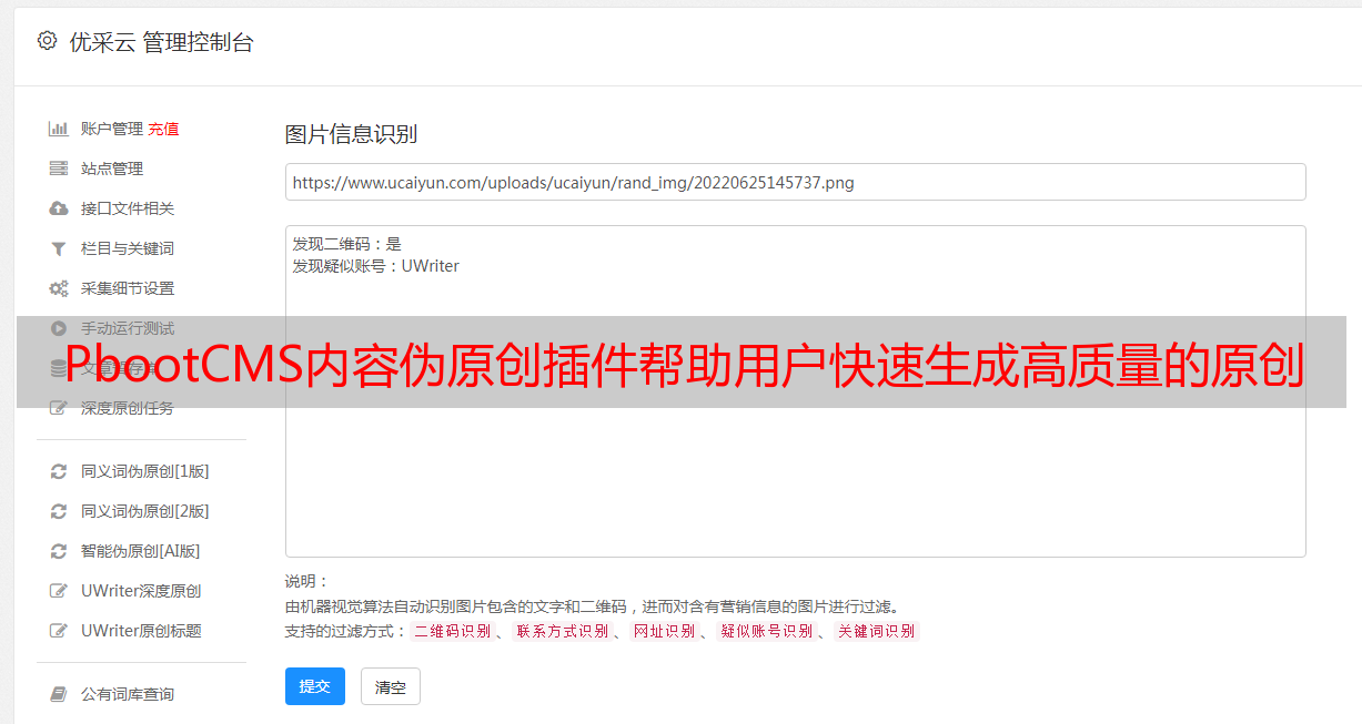 总而言之,PbootCMS内容伪原创插件是一款强大的工具,可以帮助用户快速生成高质量的原创文章,并提升网站SEO优化效果。如果你想要了解有关PbootCMS内容伪原创插件更多信息,可以前往“优采云”(www.ucaiyun.com)官网进行了解。