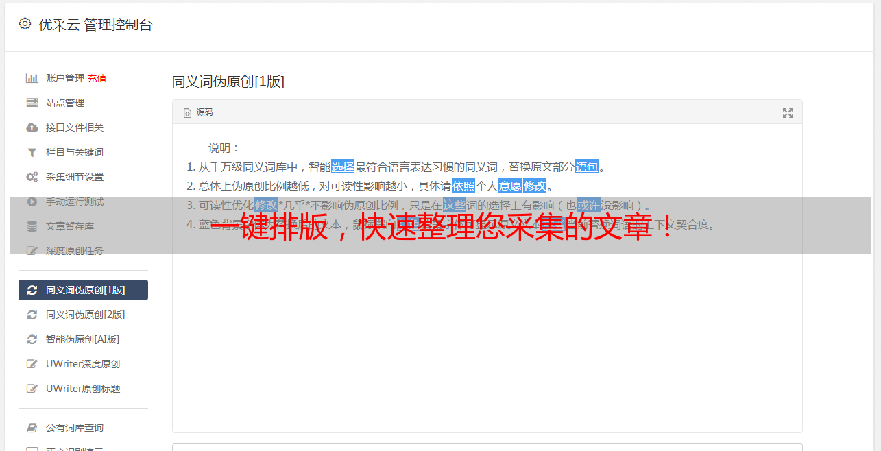 优采云 发布时间: 2023-02-20 22:33如今,文章采集已经成为了信息发布和传播的重要利器,能够有效地将信息汇聚到一起,便于大家更好地理解和学习。但是,往往有一个问题困扰着广大文章采集者,即如何将这些采集的文章进行一键排版?