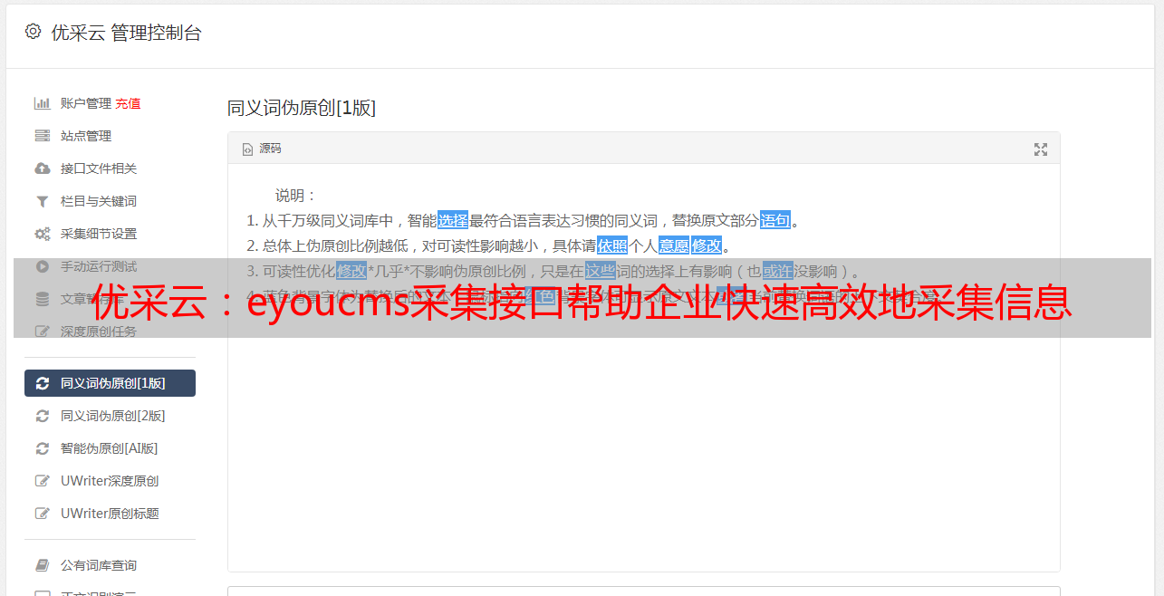 优采云:eyoucms采集接口帮助企业快速高效地采集信息