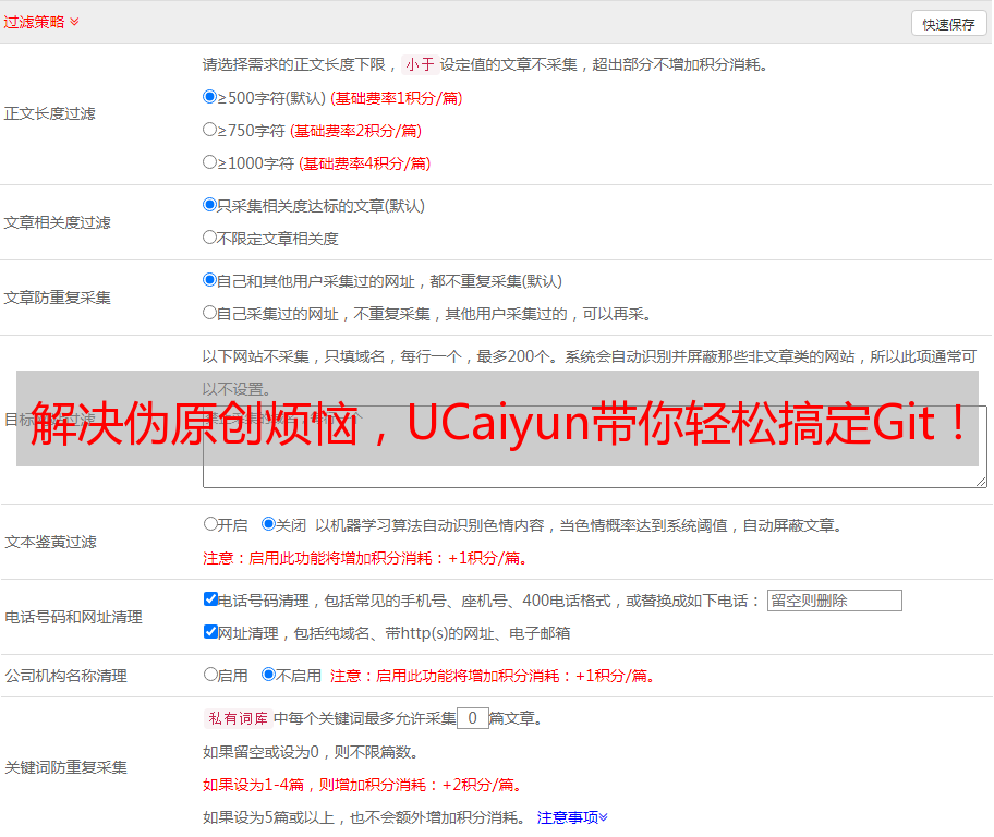 总之,GIT是一个很好的工具来避免伪原创问题。而UCaiyun能够帮助用户快速地使用GIT来避免伪原创问题,并提供SEO优化、数据库管理、Web开发等功能。如果想要使用GIT来避免伪原创问题,不妨试试UCaiyun吧!