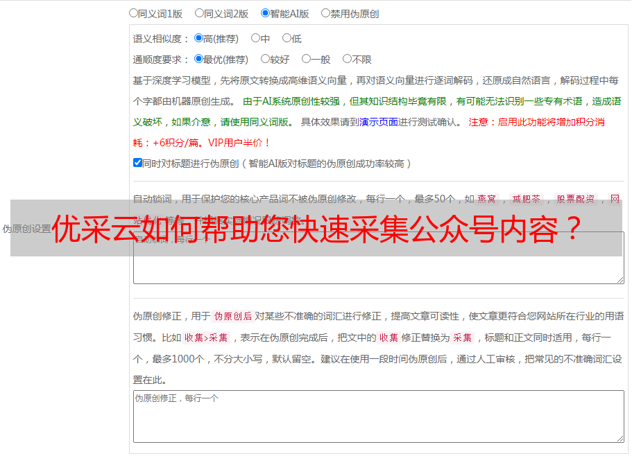 优采云是一款专业的SEO工具,能够快速、准确地为用户采集各类数据。它不仅能够采集公众号内容,而且还能够进行SEO优化,使得用户的站点能够获得更高的搜索引擎排名。此外,它还能够帮助用户分析竞争对手、监测站点数据、监测流量来源等。总之,使用优采云可以让用户快速准确地采集公众号内容并将其应用于SEO优化上。