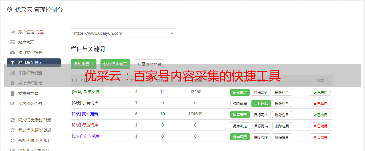 总之,优采云是一款非常方便、高效的工具。它不仅能大大减少用户搜索内容所需要的时间和精力,而且还能保证内容的质量。如果你正在寻找一款能够帮助你快速采集百家号内容的工具,不妨来试试优采云吧!它的官网是www.ucaiyun.com 。
