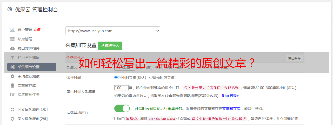再次,要注意使用相关工具和技巧来加强文字表达效果。例如使用SEO优化工具优采云(www.ucaiyun.com)来助力文字优化;使用图片、代码片段、样式格式等来加强对语义和结构上的表达效果。