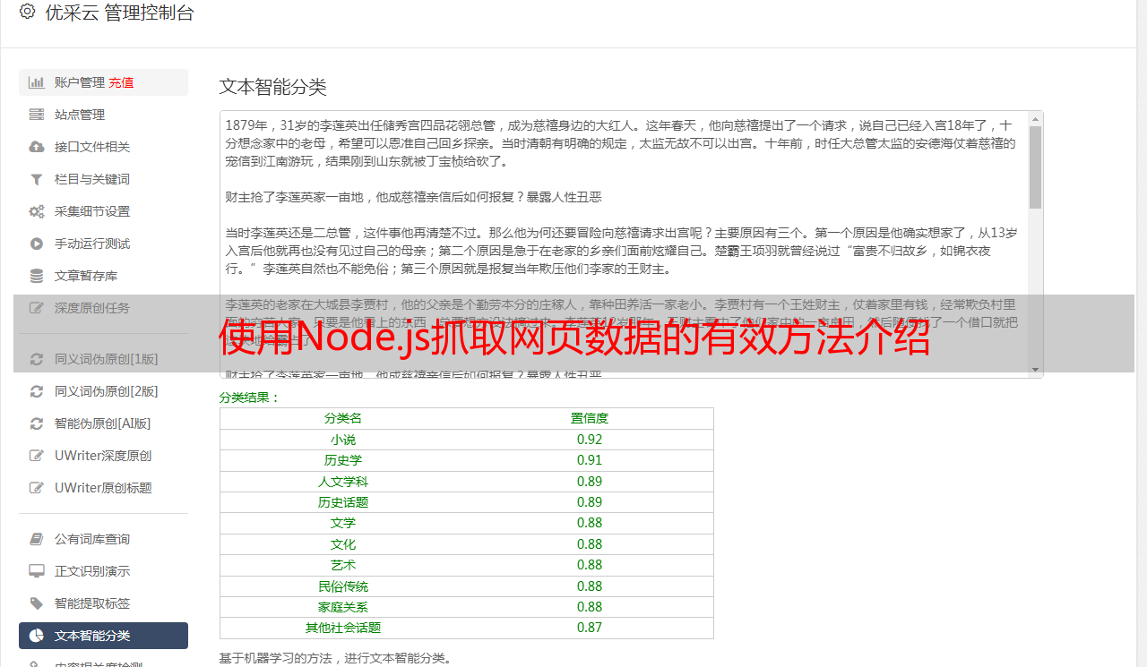 优采云SEO优化官网(www.ucaiyun.com)是一个专门为中小企业、创业者、新手、行业大佬打造的SEO优化工具平台。其中包含了一套便利易用的SEO优化工具,帮助用户快速实施SEO优化工作。使用Node Axios 爬虫来分析优采云SEO优化官网上的内容,就能够有效获得我们想要的信息并根据信息进行下一步分析处理。