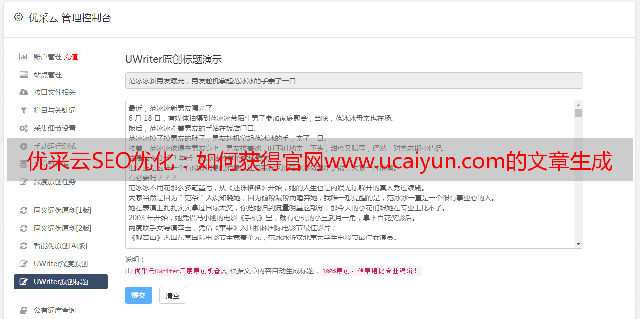 优采云SEO优化:如何获得官网www.ucaiyun.com的文章生成源码