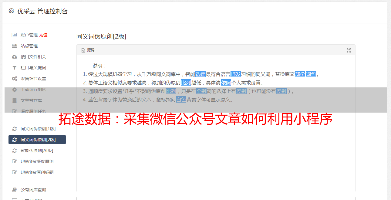 通过以上拓途数据的介绍,我们了解到采集微信官方号文章的相关内容。只有了解微信公众号的功能和用途,才能更好地保证文章的采集。