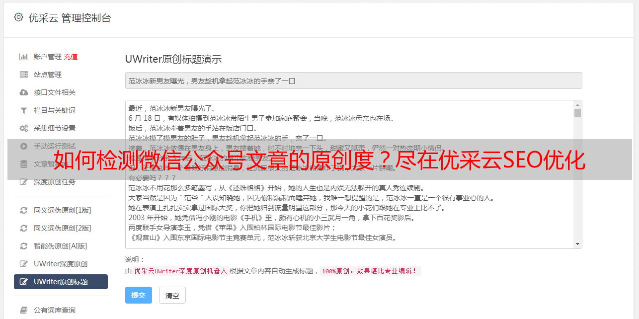 如何检测微信公众号文章的原创度?尽在优采云SEO优化