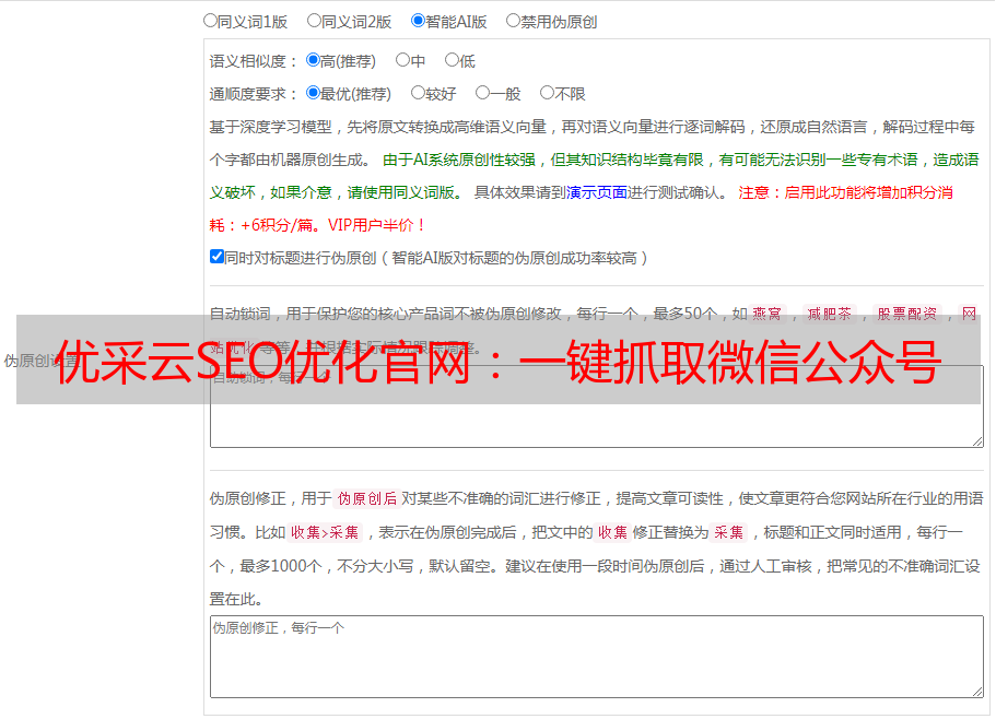 优采云SEO优化官网:一键抓取微信公众号文章列表!