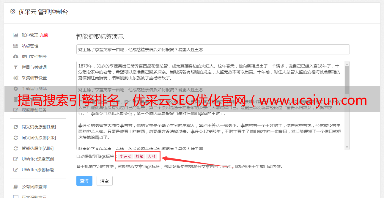 提高搜索引擎排名,优采云SEO优化官网(www.ucaiyun.com)助你一臂之力!