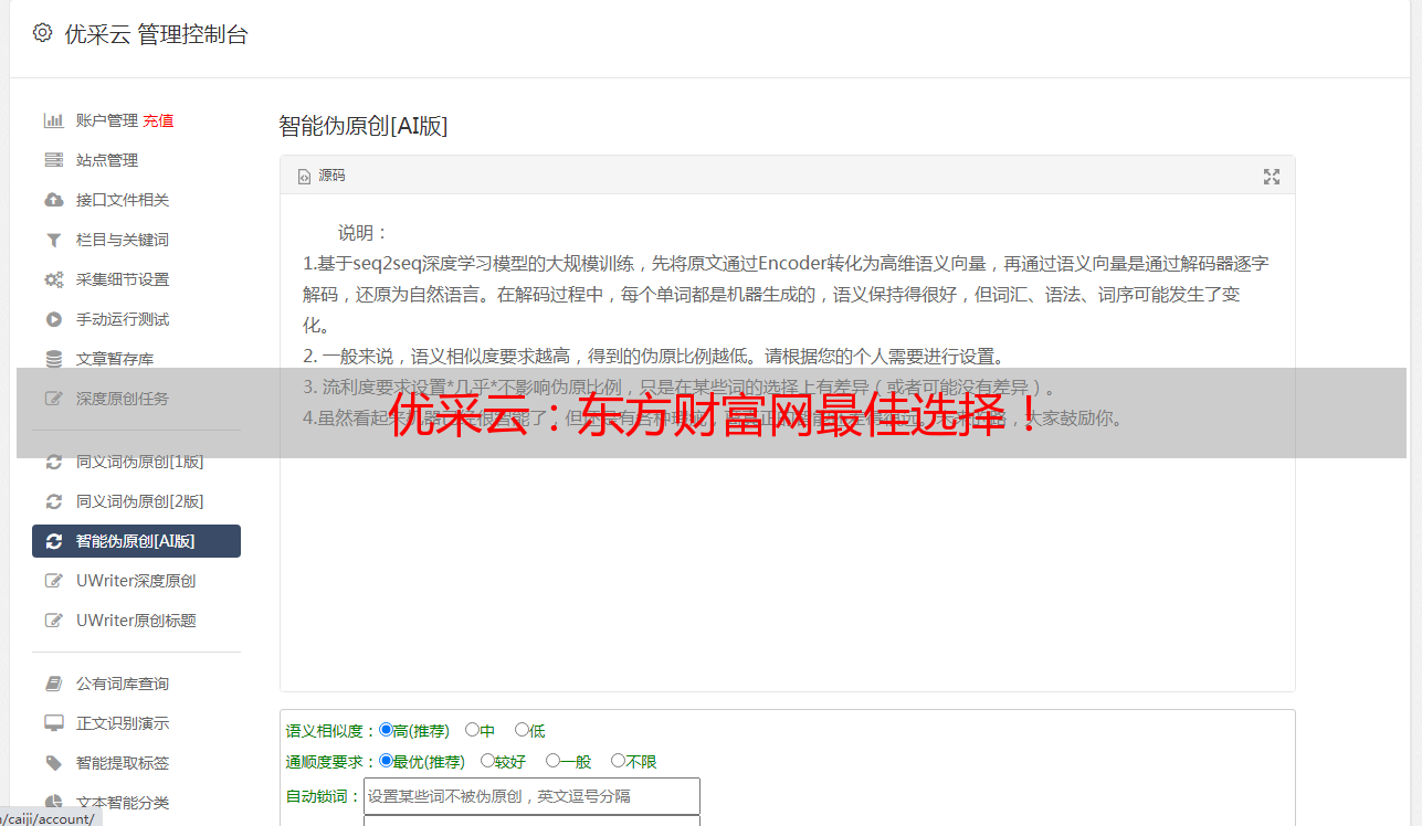 总之,如果想要利用东方财富上的内容,使用优采云就是一个明显的不二之选。它不仅能够大大减少人工浏览的时间和努力成本,而且还能够将所需要的内容进行准确呈现。如此一来,我们就可以快速、有效地从东方财富上获取我们所需要的信息。如有兴趣了解优采云相关信息,请浏览它官网www.ucaiyun.com.