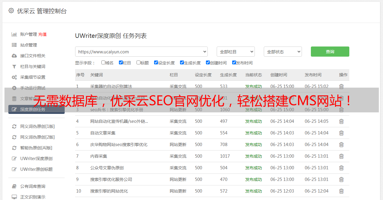 无需数据库,优采云SEO官网优化,轻松搭建CMS网站!