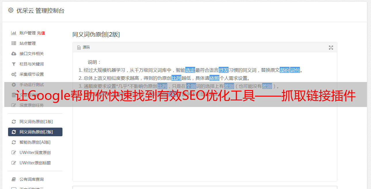 总而言之,Google 抓取链接插件是电子商务行业的一种非常有效的 SEO 优化工具,为电子商务行业营销人员提供了非常有效的 SEO 优化服务;优采云SEO优化官网www.ucaiyun.com就是一家专注于此方向并拥有十余年历史和实力的行业领导者。