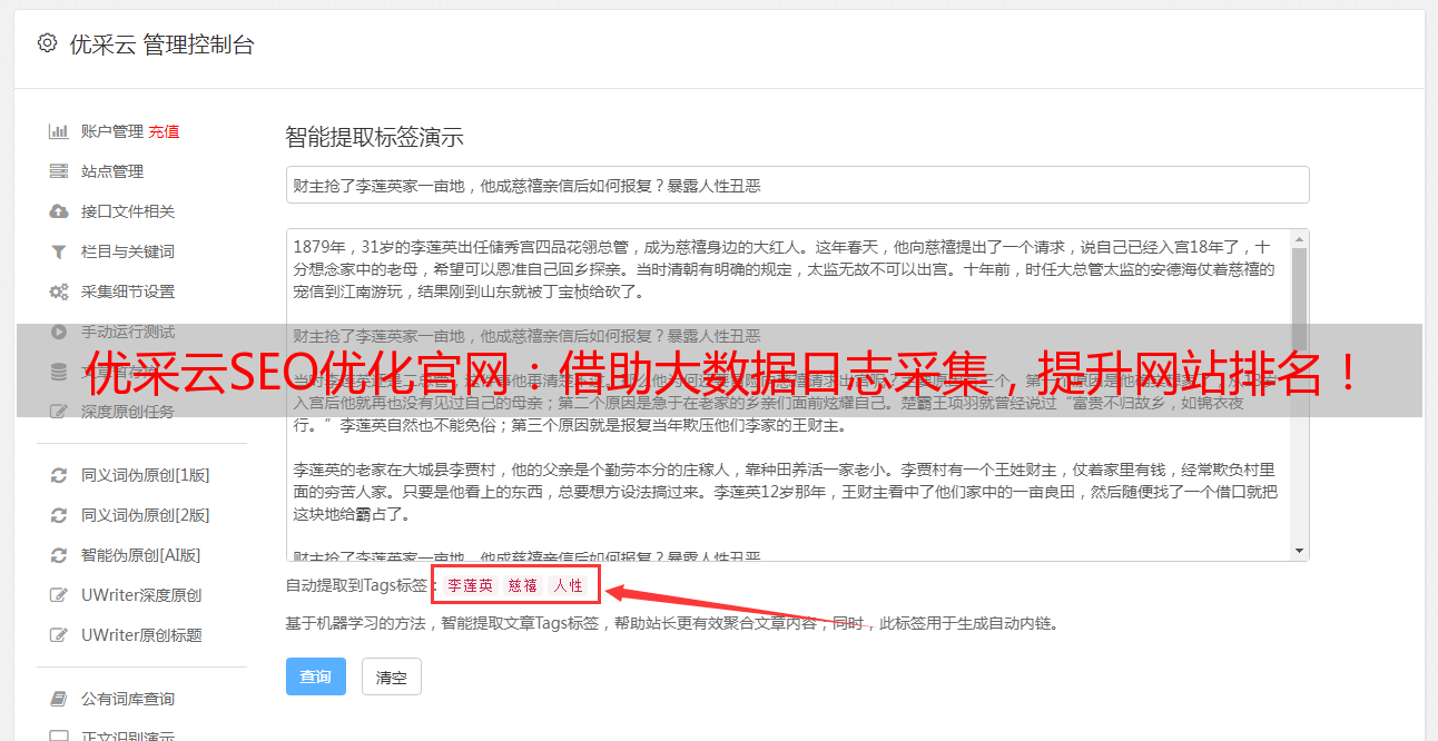 优采云SEO优化官网:借助大数据日志采集,提升网站排名!