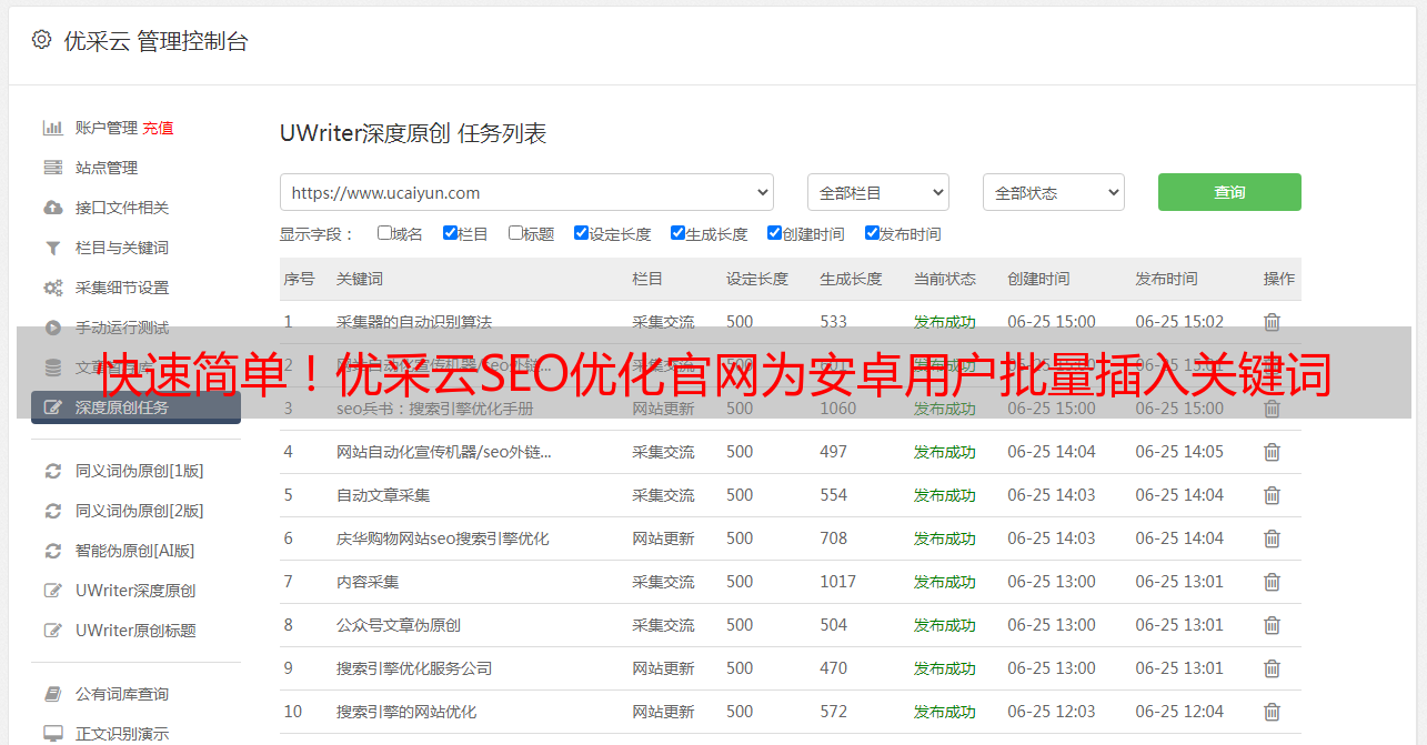 快速简单!优采云SEO优化官网为安卓用户批量插入关键词