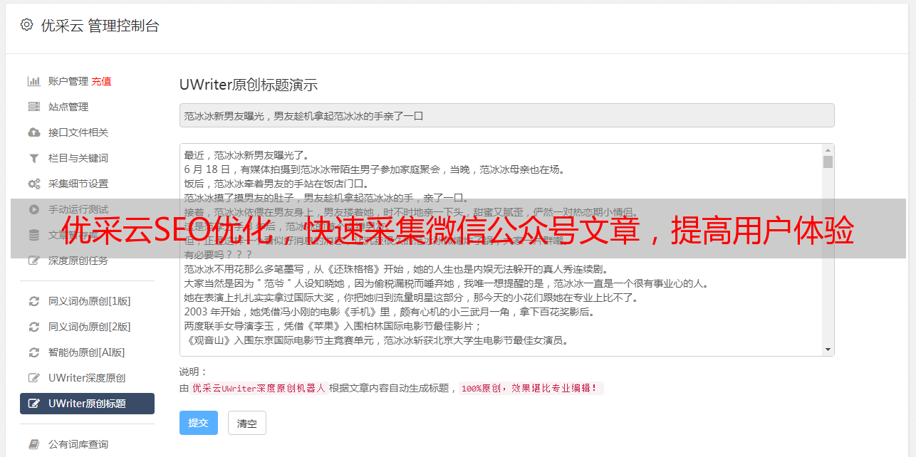 优采云SEO优化,快速采集微信公众号文章,提高用户体验