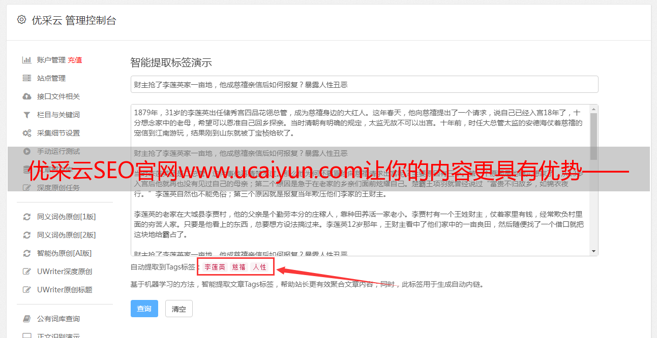 优采云SEO官网www.ucaiyun.com让你的内容更具有优势——伪原创功能