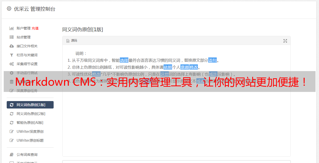 优采云 发布时间: 2023-02-24 18:24近年来,随着网络技术的发展,CMS(内容管理系统)已成为网站建设的重要工具。它可以帮助用户快速建立一个功能齐全、易于使用的网站,而不需要太多的技术支持。在众多的CMS中,基于Markdown的CMS是最受欢迎的一种。