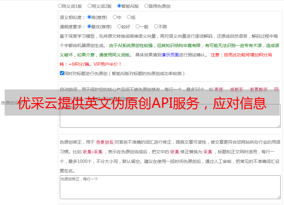 优采云提供英文伪原创API服务,应对信息时代