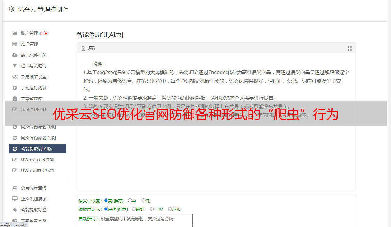 优采云SEO优化官网防御各种形式的“爬虫”行为