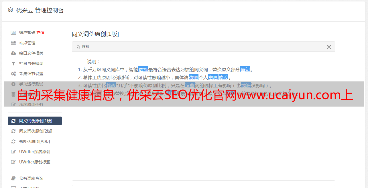 自动采集健康信息,优采云SEO优化官网www.ucaiyun.com上的软件开发