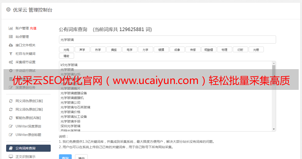 优采云SEO优化官网(www.ucaiyun.com)轻松批量采集高质伪原创