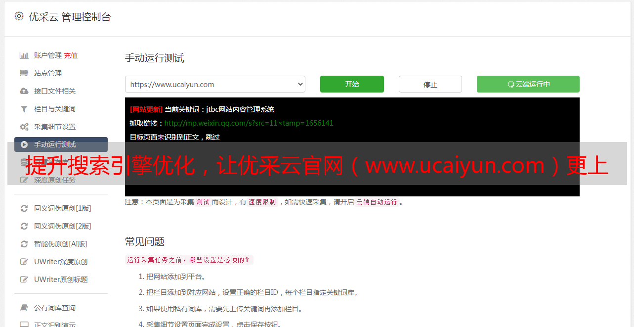 提升搜索引擎优化,让优采云官网(www.ucaiyun.com)更上一层楼!