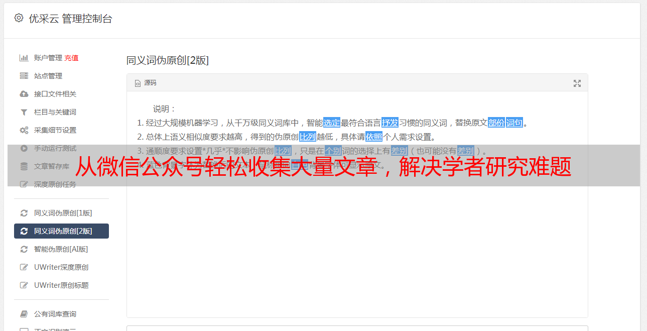 其次,采集公众号文章的方式也是必不可少的。一般来说,用户可以选择手动采集或使用数据采集软件来实现批量采集。使用数据采集软件来实现批量采集是最常用的方式,而优采云SEO优化官网(www.ucaiyun.com)上提供的数据采集软件能够有效地帮助用户实现快速、准确、方便的批量采集。
