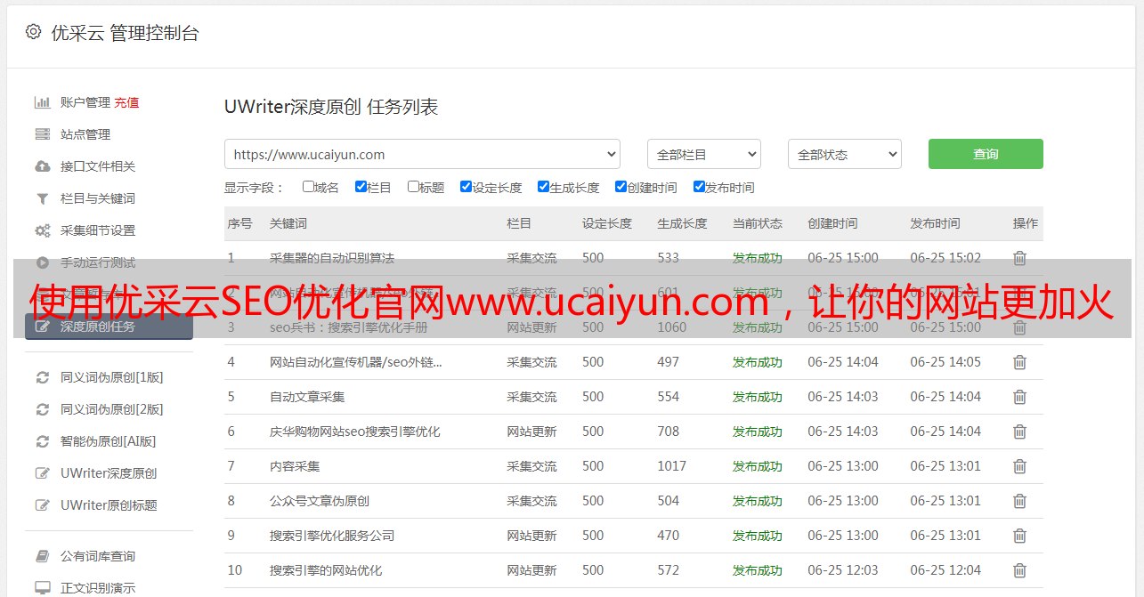 使用优采云SEO优化官网www.ucaiyun.com,让你的网站更加火爆!