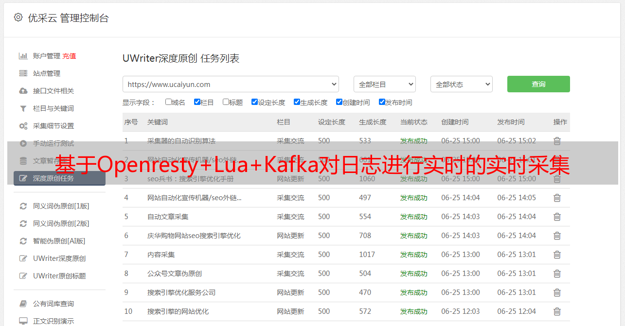 优采云 发布时间: 2021-06-09 23:27基于Openresty+Lua+Kafka对日志进行实时的实时采集