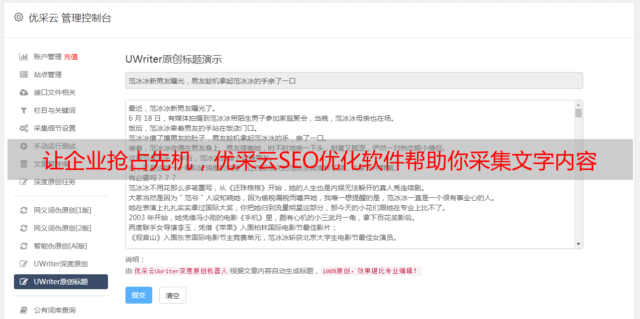 让企业抢占先机,优采云SEO优化软件帮助你采集文字内容