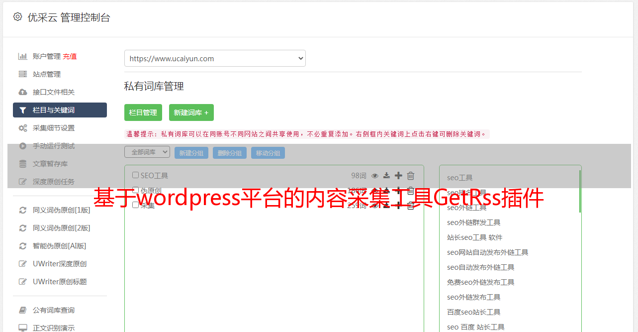 本插件是一个基于关键词搜索Youtube、YahooAnswer、文章、文件的插件工具。可保留原文或翻译成多种国家语言,可定时定量自动发布到您的博客。功能很强大,如果你想自己做二次开发,就用这个做基础不错的选择。