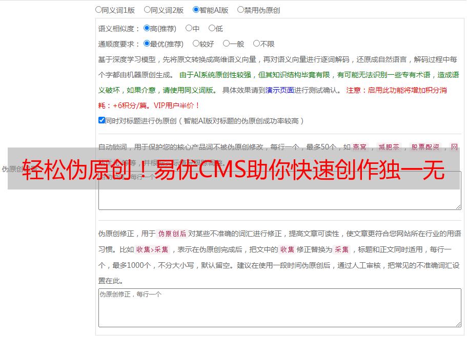轻松伪原创!易优CMS助你快速创作独一无二的文章!