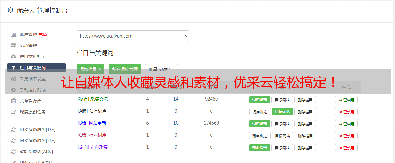 优采云作为一款专业的网络文章收集工具,提供了各种实用的功能,帮助自媒体人们轻松收集文章灵感和素材。