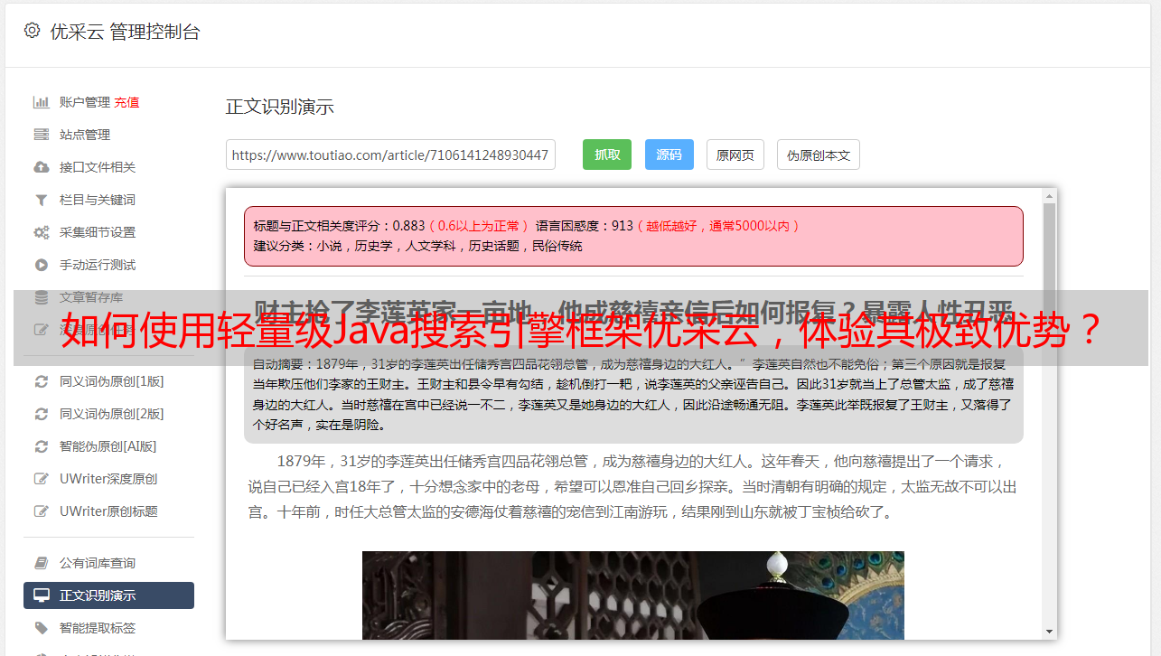 如何使用轻量级Java搜索引擎框架优采云,体验其极致优势?
