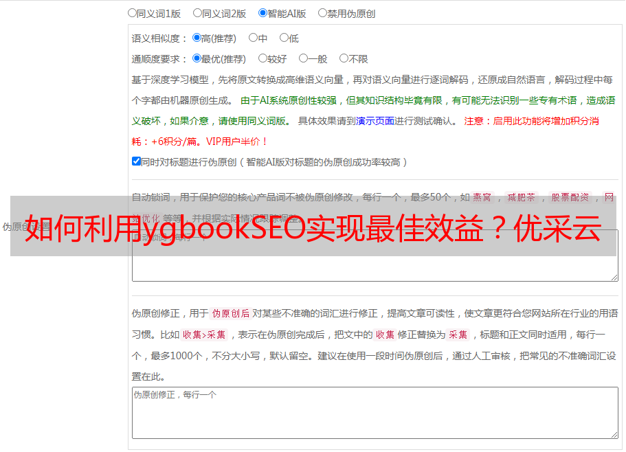 ygbook SEO是一个强大而易于使用的工具,能够帮助企业快速建立一套有效而迅速生效的SEO方法。如何使用ygbook SEO来达到最佳效益呢?优采云(www.ucaiyun.com)提供了一套易于理解并易于使用的详尽文库和学习中心,帮助新手和老手都能够迅速上手并把ygbook SEO应用到工作中去。