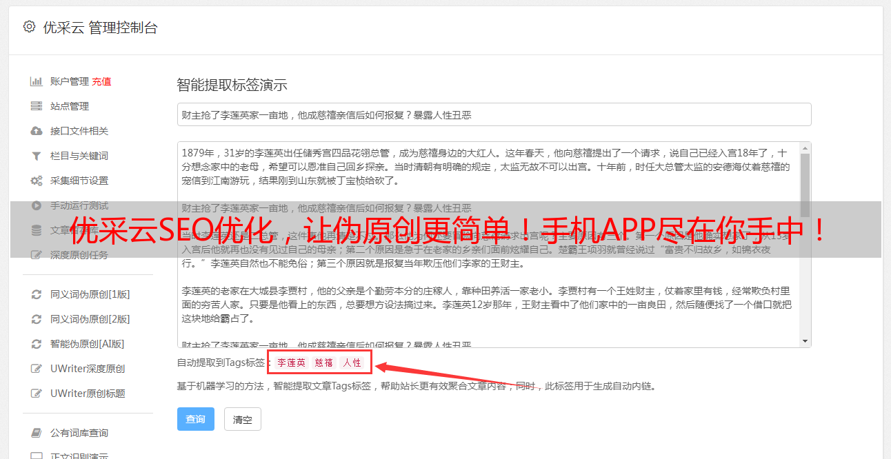 优采云SEO优化,让伪原创更简单!手机APP尽在你手中!
