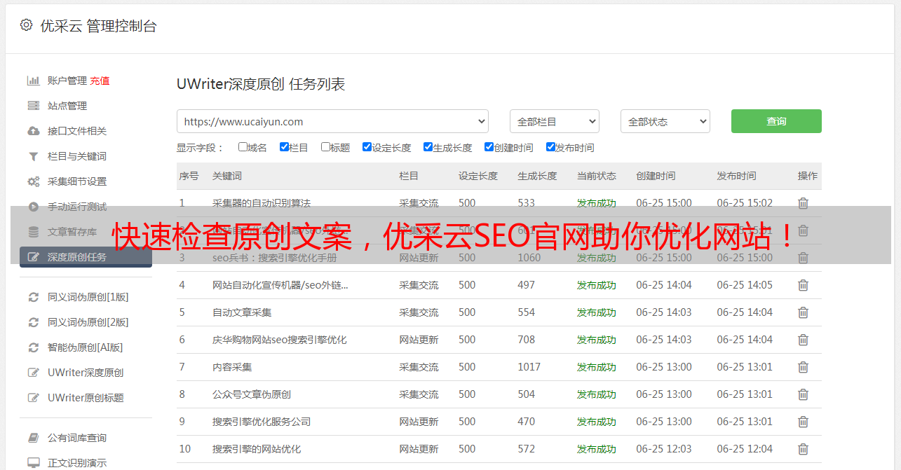 快速检查原创文案,优采云SEO官网助你优化网站!