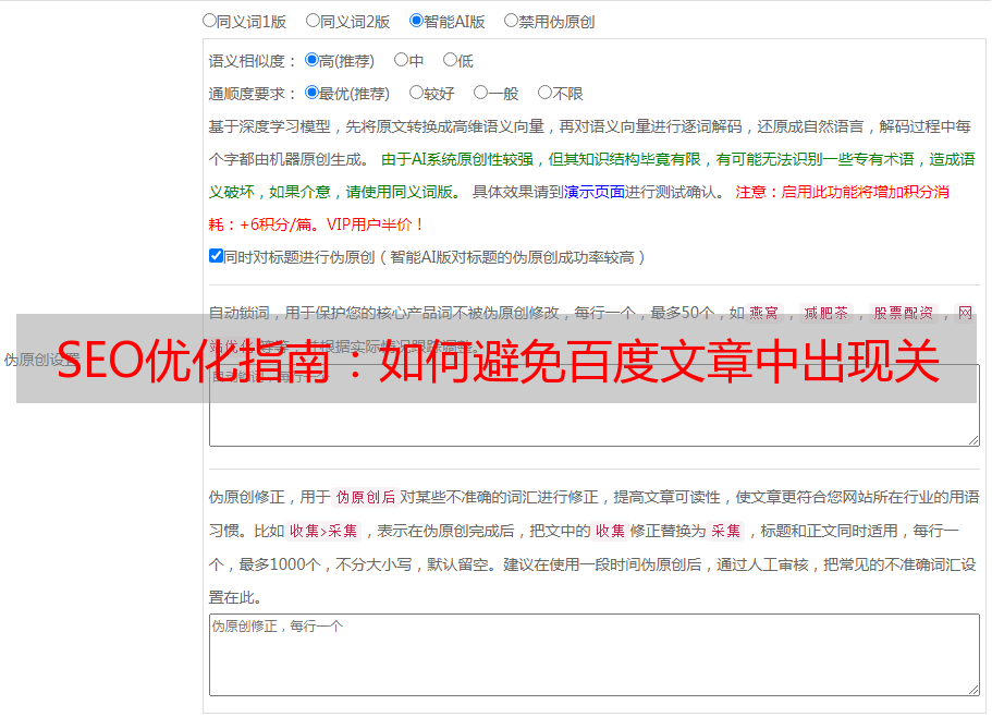 总之,如何做好SEO优化是一个非常重要的问题。如果想要解决“百度文章不显示关键字”问题,就必须重视SEO优化工作。使用优采云 SEO优化(官方网址:www.ucaiyun.com)是一个不错的选择:既可以快速找到合适的关键词、也可以对文章内容进行校正、修改、表达性强化、图片、代码压缩、URL重写、Meta标签生成、Robots.txt生成等工作。通过正确有效地使用SEO优化工具,我们就能够有效解决“百度文章不显示关键字”的问题。