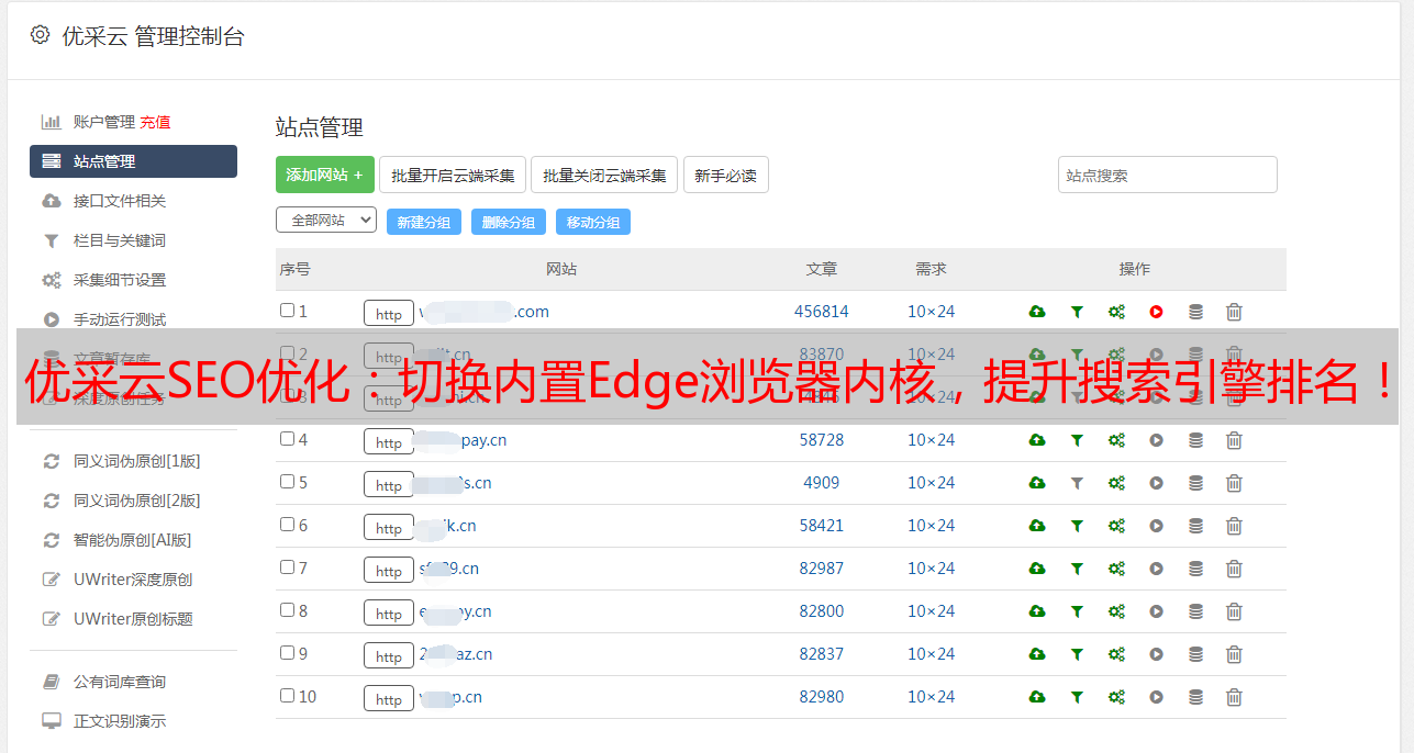 优采云SEO优化:切换内置Edge浏览器内核,提升搜索引擎排名!