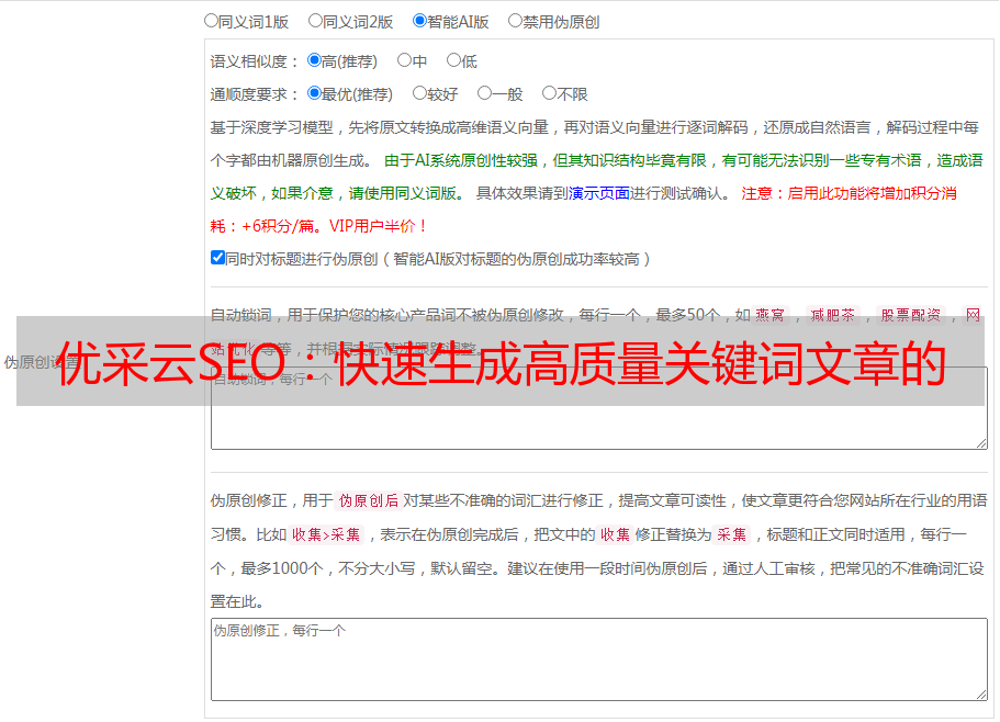 总之,优采云SEO优化官网上的关键词生成文章工具是一个很好的帮助广大用户快速生成文章并对所生成内容进行SEO优化的工具。使用者只要在上面输入相应的信息就能快速得到所有想要得到的信息并将信息尤其是原始核心关键字单词在搜索引擎上得到最大化展示。
