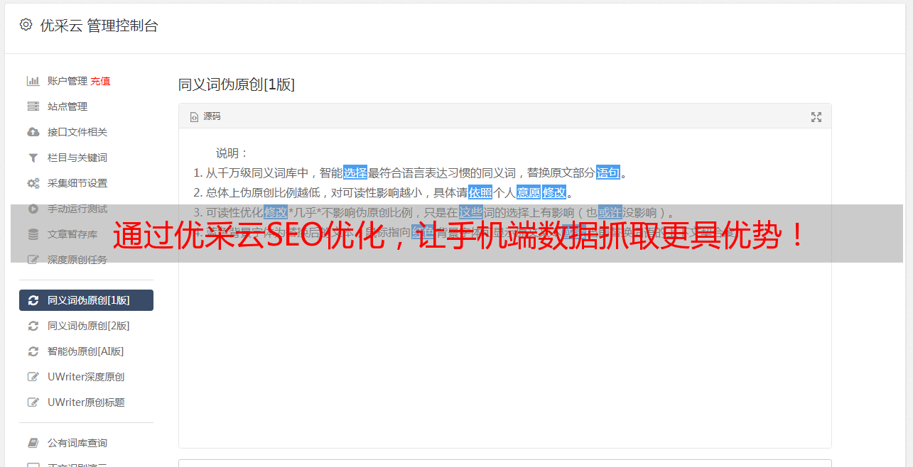 通过优采云SEO优化,让手机端数据抓取更具优势!