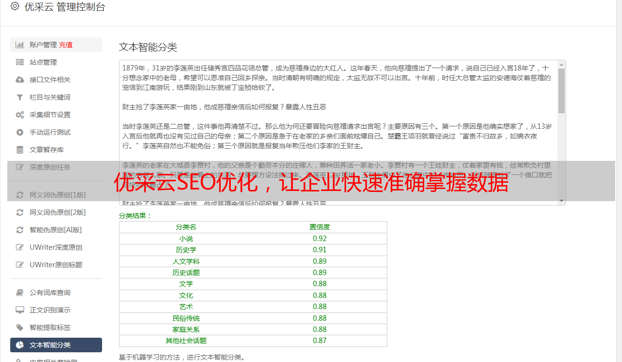 总之,作为一款专业的SEO软件采集器,优采云 SEO 优化能够帮助用户快速、准确地获取各种数据;能够帮助用户进行关键词分析、竞争分析、内容分析、链接分析和用户行为分析等;能够根据实时数据进行监测和评估;它是一套安全可靠、使用方便、易学易用的SEO工具。如你想要尝试使用此工具来进行SEO优化,可前往www.ucaiyun.com 免费试用。